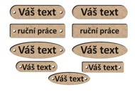- dřevěné, kožené a překližkové cedulky na zboží s gravírovaným nebo tištěným nápisem nebo logem