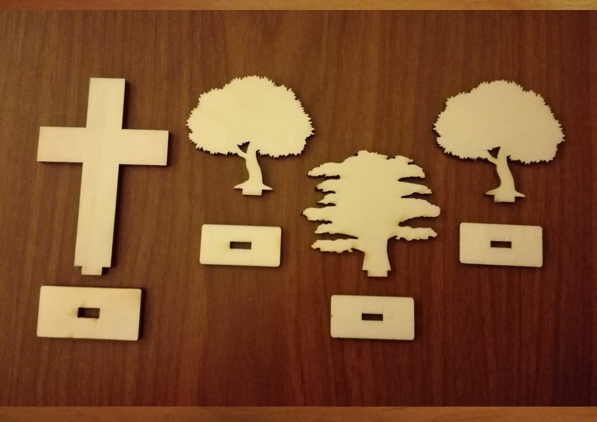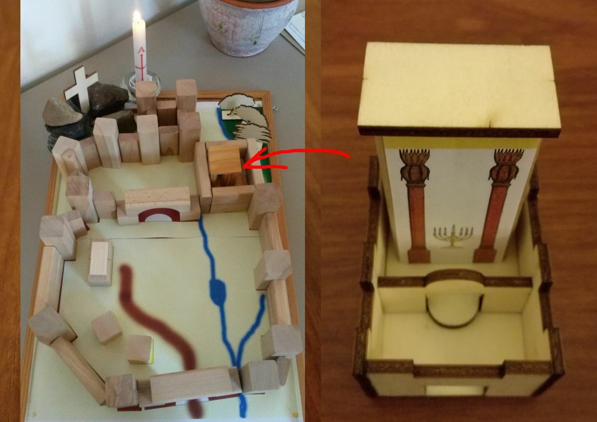 Sada bukových kostek různých tvarů ke stavbě města Jeruzaléma.