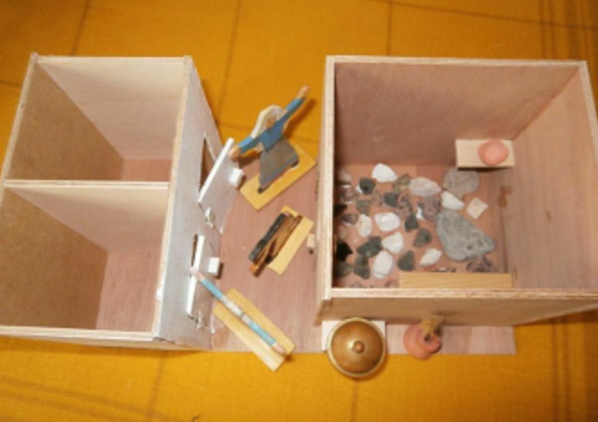 • dioráma, které se skládá ze tří domků s otevíracími dveřmi