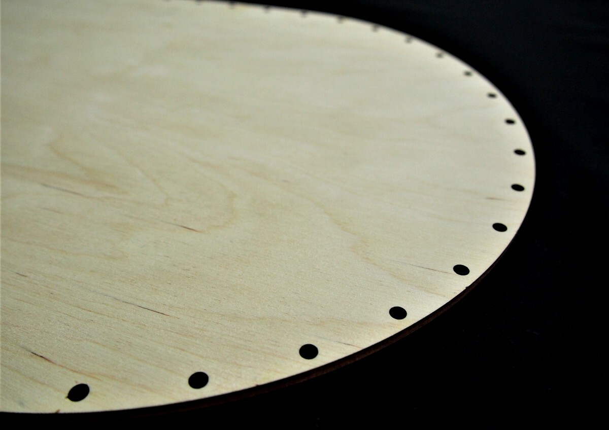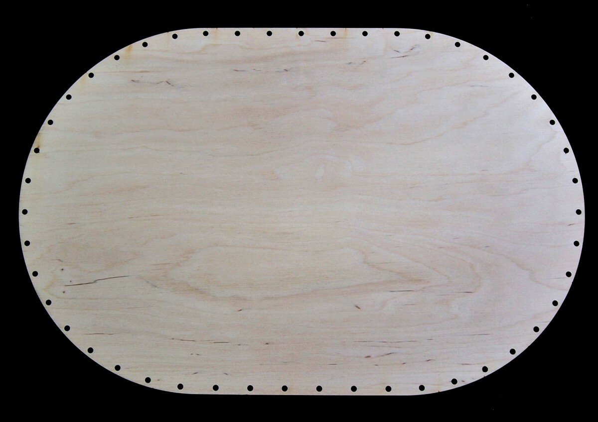 Dno ve tvaru OVÁLU pro výrobu košíku. Víka a dna jsou na pravý, neoplétaný pedig tloušťky do 3mm. Dírky jsou 3,5mm a vzdálenost mezi nimi cca 2 cm. Tvar je vyřezán laserem z překližky (tloušťka materiálu je 4 mm)