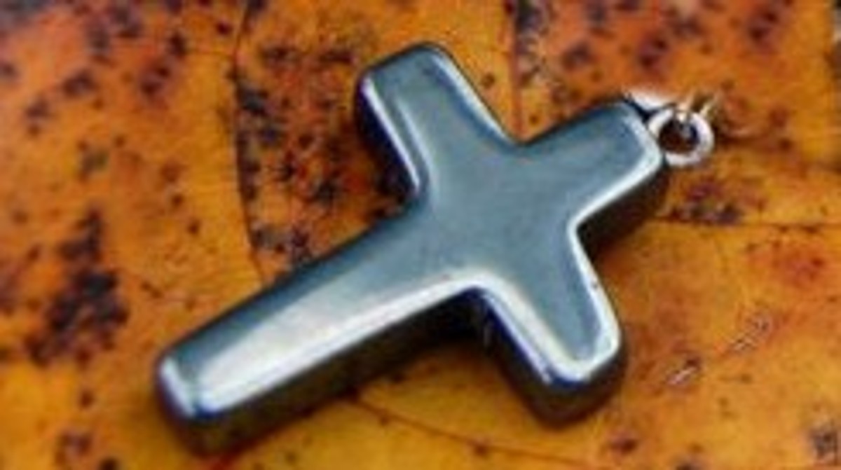 - křížek vybroušený z hematitu (křížek je vysoký 3,4 cm a široký 2 cm)