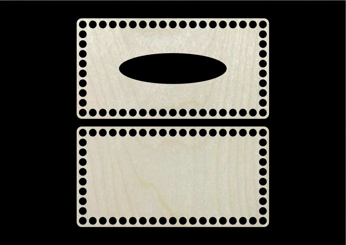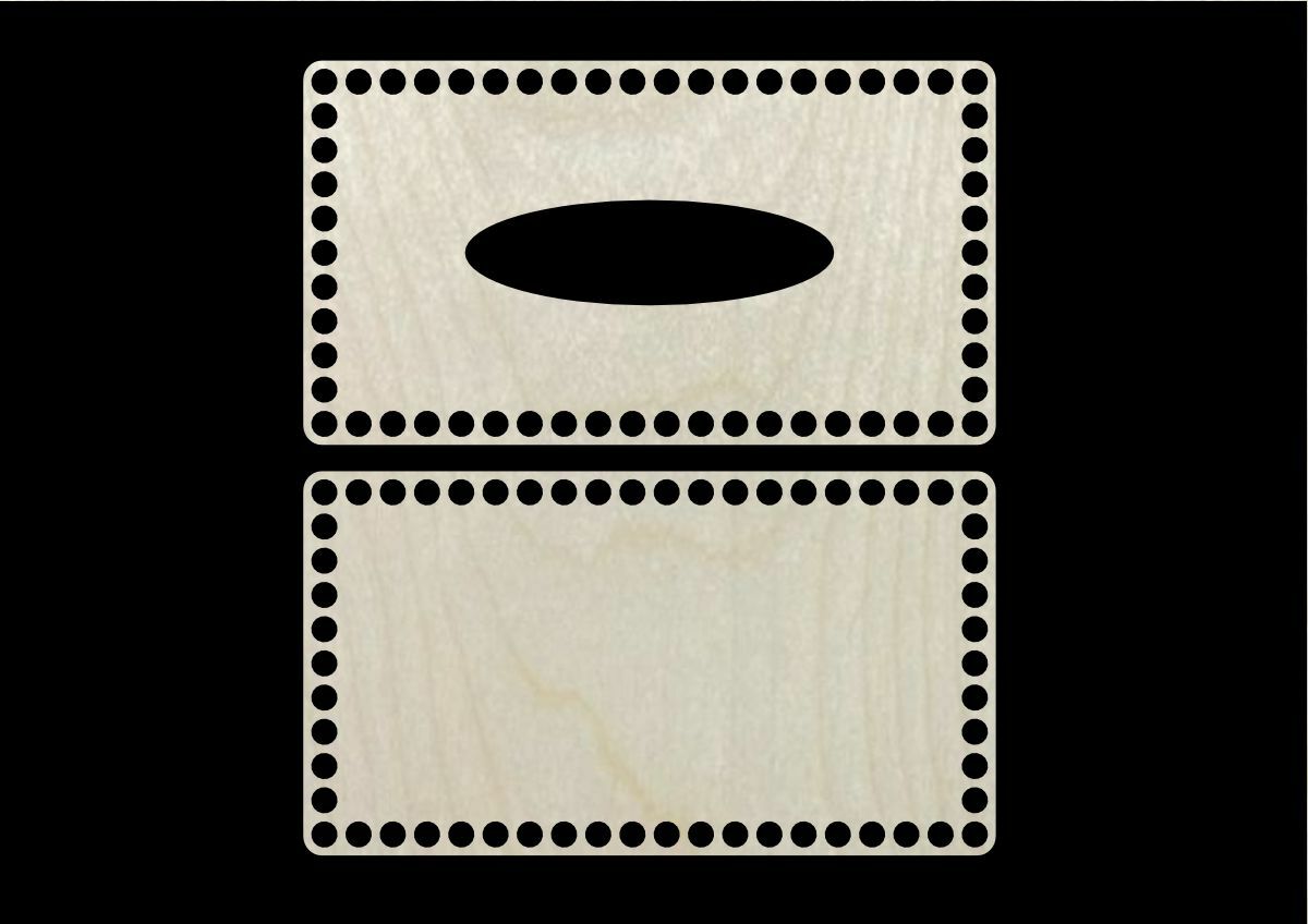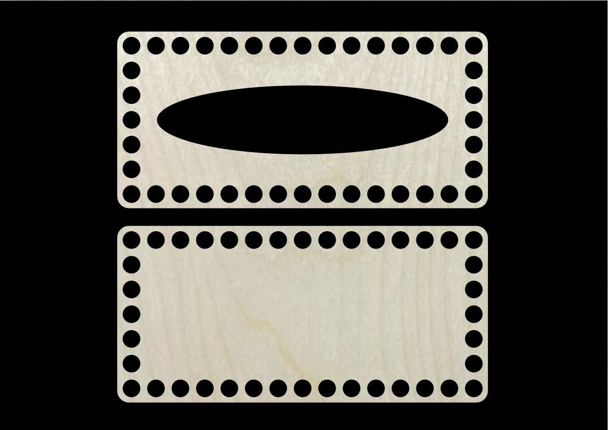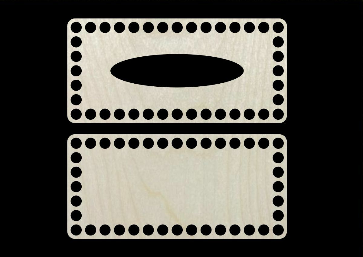 Sada - Dno a víko na háčkovanou krabičku na papírové kapesníky. Vyřezáno laserem z překližky (tloušťka materiálu je 3-4 mm), průměr dírky je 10 mm. Mezery mezi dírkami jsou 3 mm, takže středová vzdálenost dírek je 13 mm.