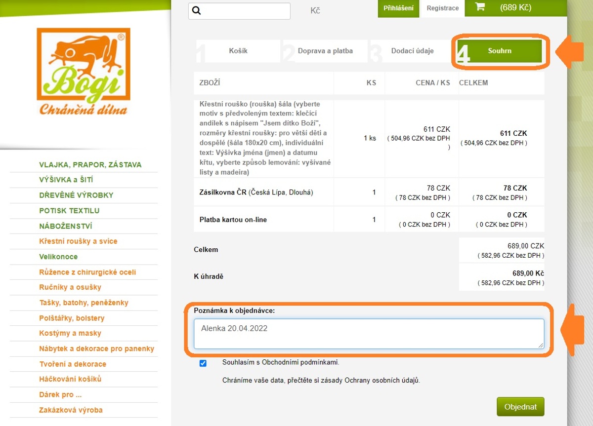 Jméno a datum křtu, které si přejete vyšít prosím vypište do poznámky na konci Vaší objednávky!