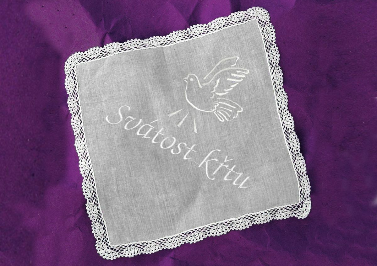 Křestní rouško symbolizuje bílý oděv, který obléká křtěnec na znamení čistoty a nového života. Používá se při křtu a zůstává křtěnci na památku. Rouška z naší dílny jsou vyšívaná bílou lesklou viskózovou přízí na bílém bavlněném plátýnku a lemovaná krajkou madeirou 1,5 cm širokou. Lesklá bílá příze je na plátně dobře vidět a působí čistým a důstojným dojmem. Symbolika čistě bílého roucha zůstává zachována.