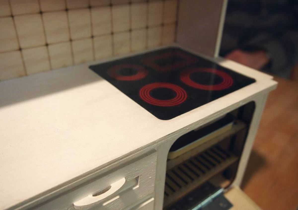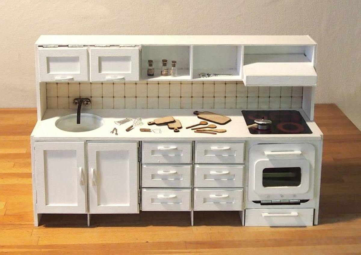 Krásná kuchyňka pro panenky s propracovanými detaily.