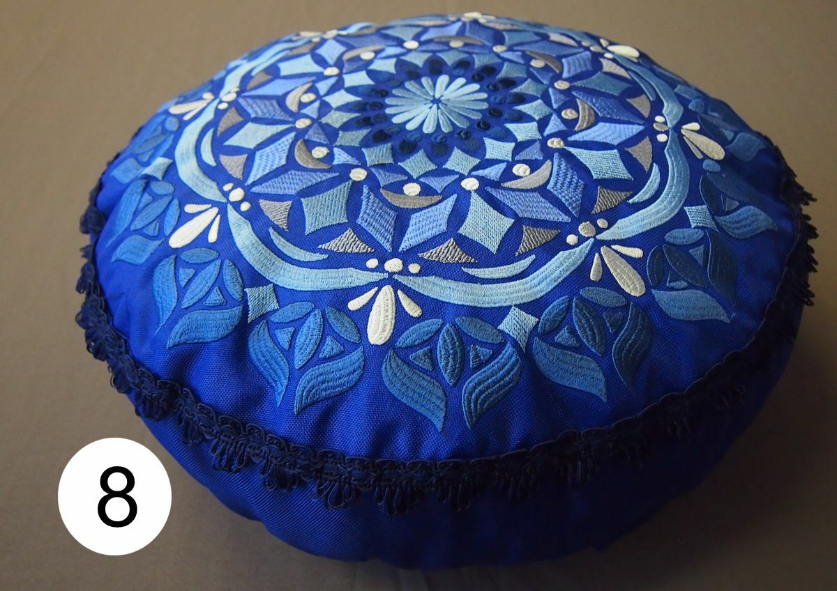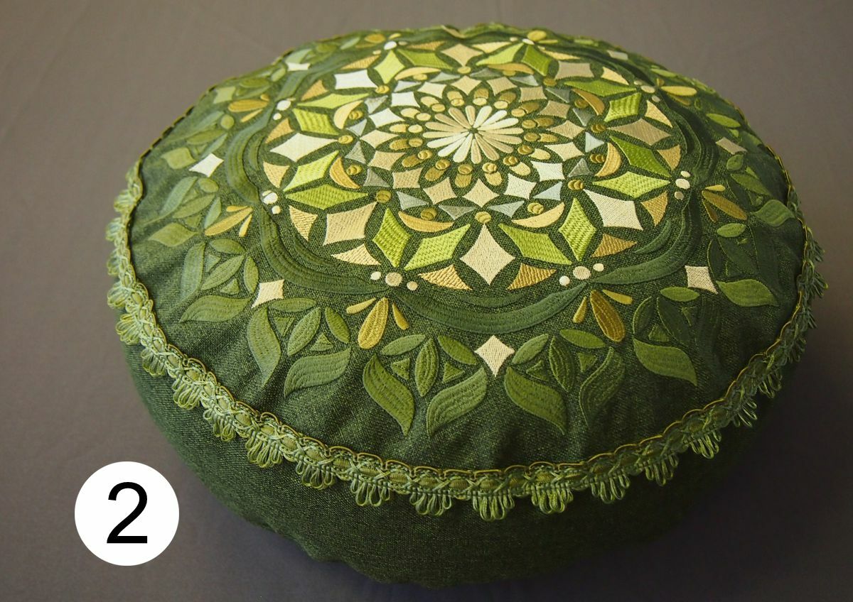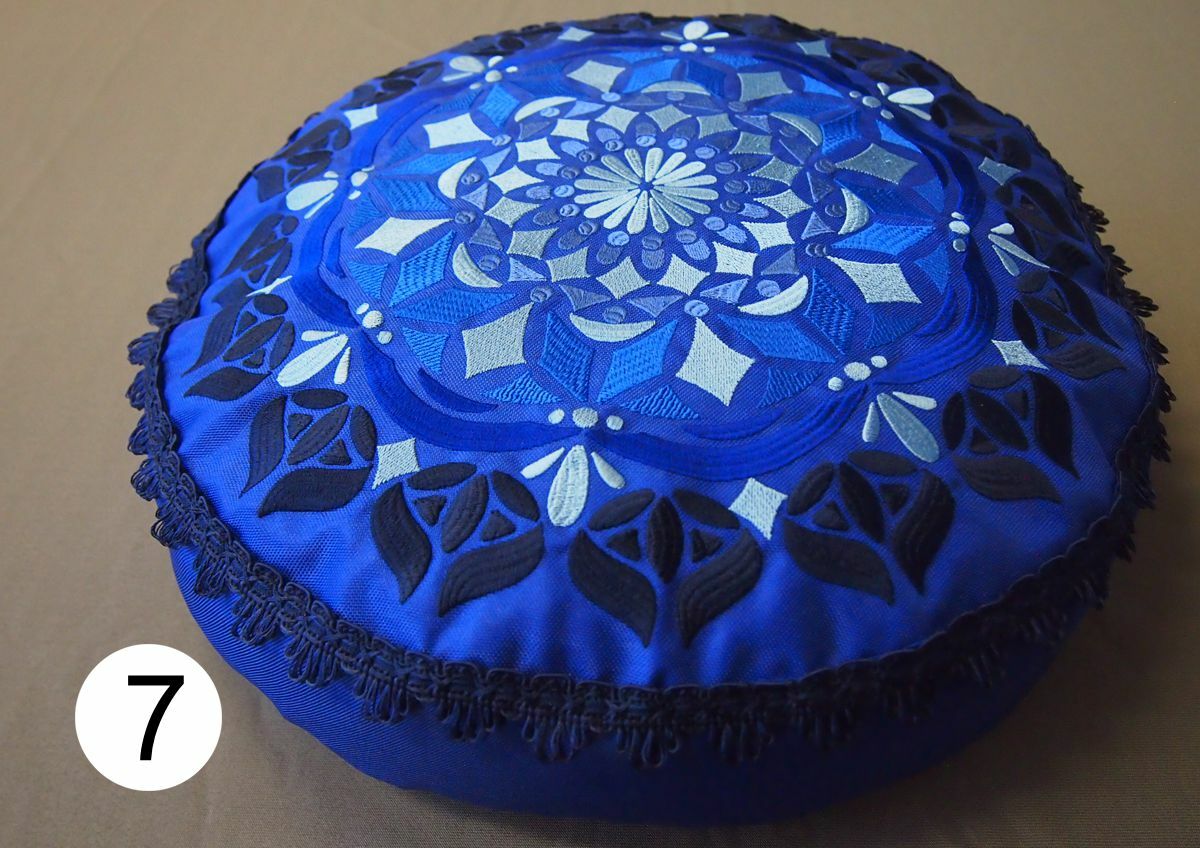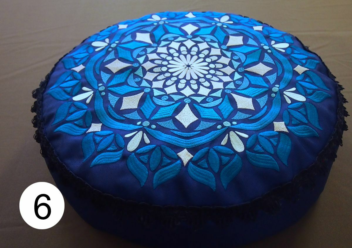 Polštářky pro ideální sezení na zemi (uvnitř i venku), ovšem všechny zazáří i v interiéru. Jsou ušity z velmi pevné polyesterové látky, která má z rubové části zátěr proti vlhkosti a chladu od země. Je třeba chránit před deštěm, horní strana polštářů je prodyšná - barva mechová; pistáciová; skořicová; fialová; světle fialová (lila); černá.