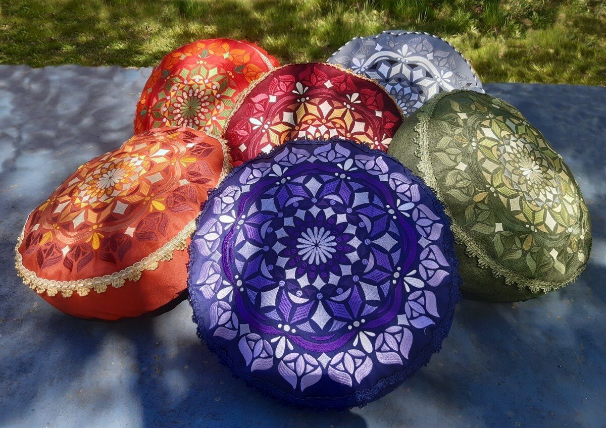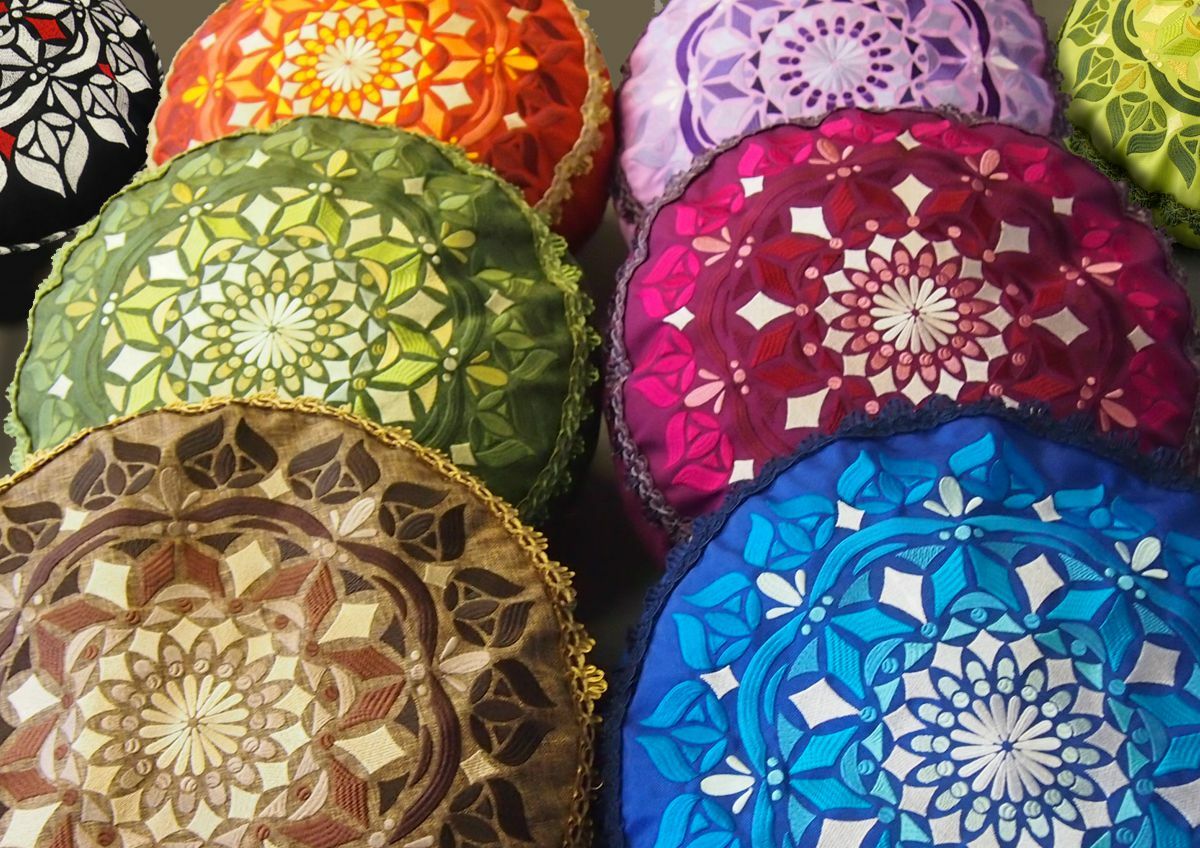 Polštářek s autorskou výšivkou "Mandala" (autorka Martina Bogarová)