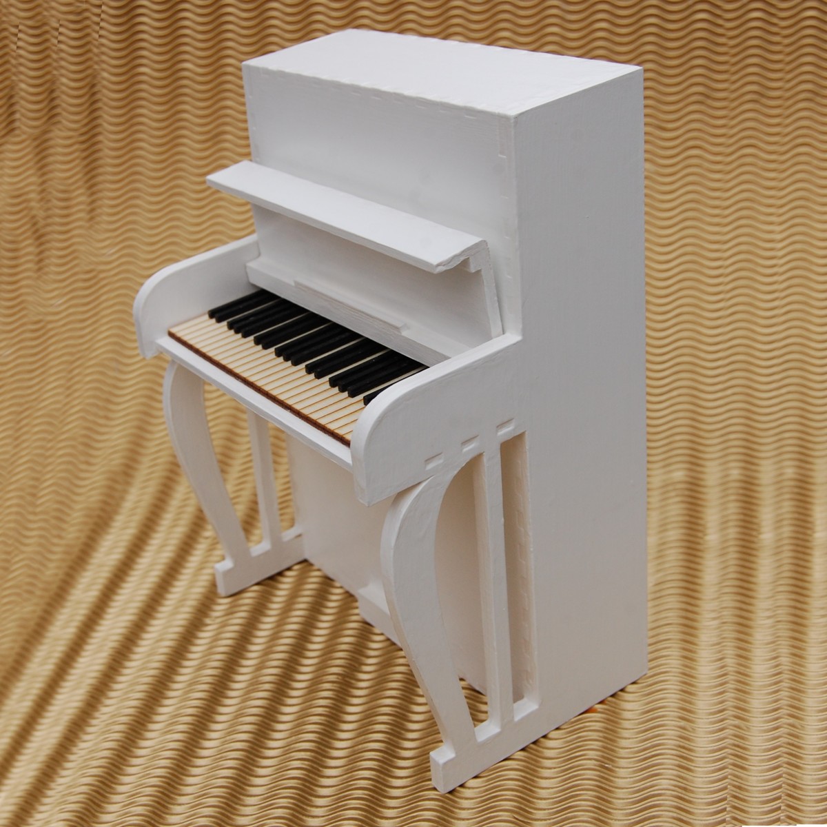 Je vyrobené z břízové překližky. Víko kláves se dá odklápět, klávesy jsou vystouplé.