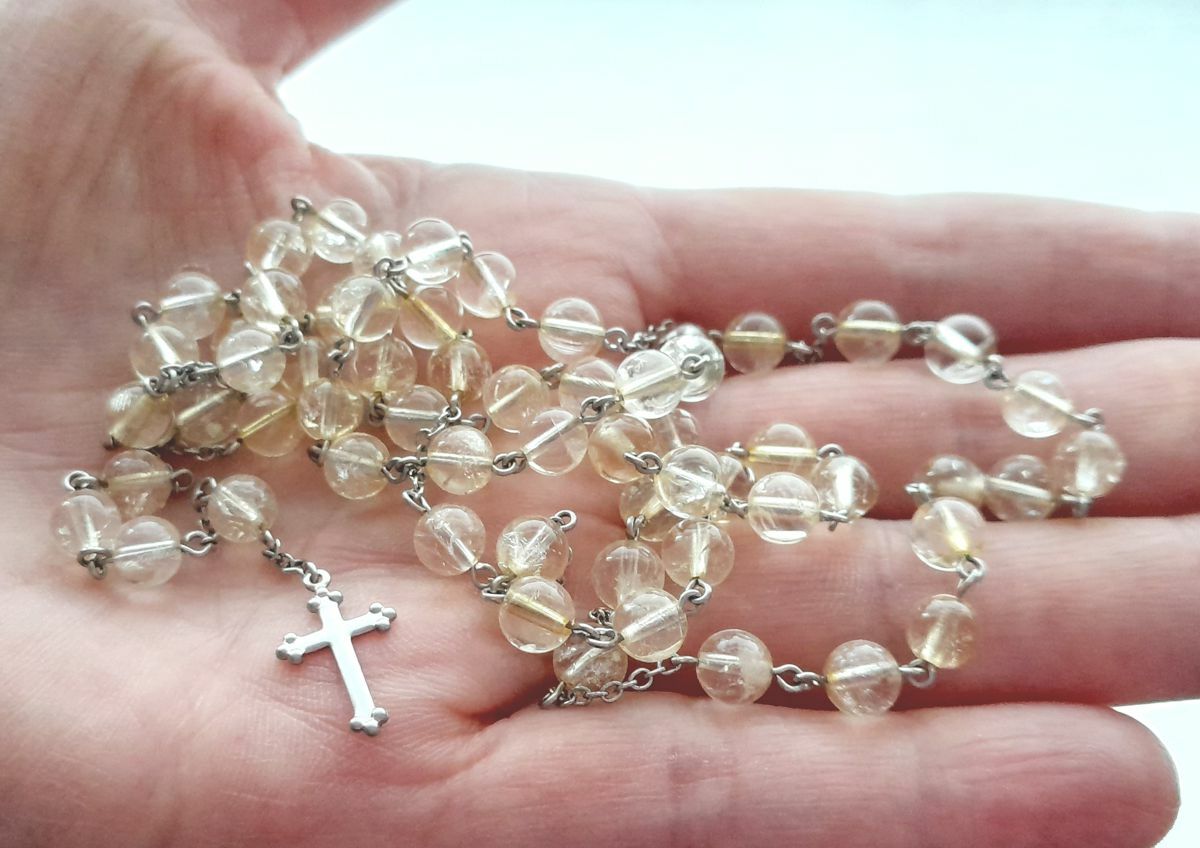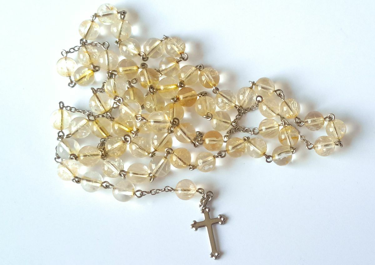Úžasný růženec z citrínu a chirurgické oceli vyrobený v naší chráněné dílně.