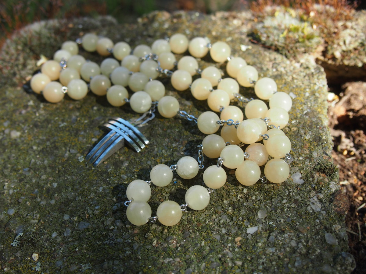 Růženec z jadeitu a chirurgické oceli vyrobený v naší chráněné dílně.