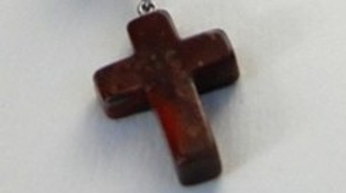 - křížek vybroušený z brekciového jaspisu, rozměry křížku cca 18x12x4 mm