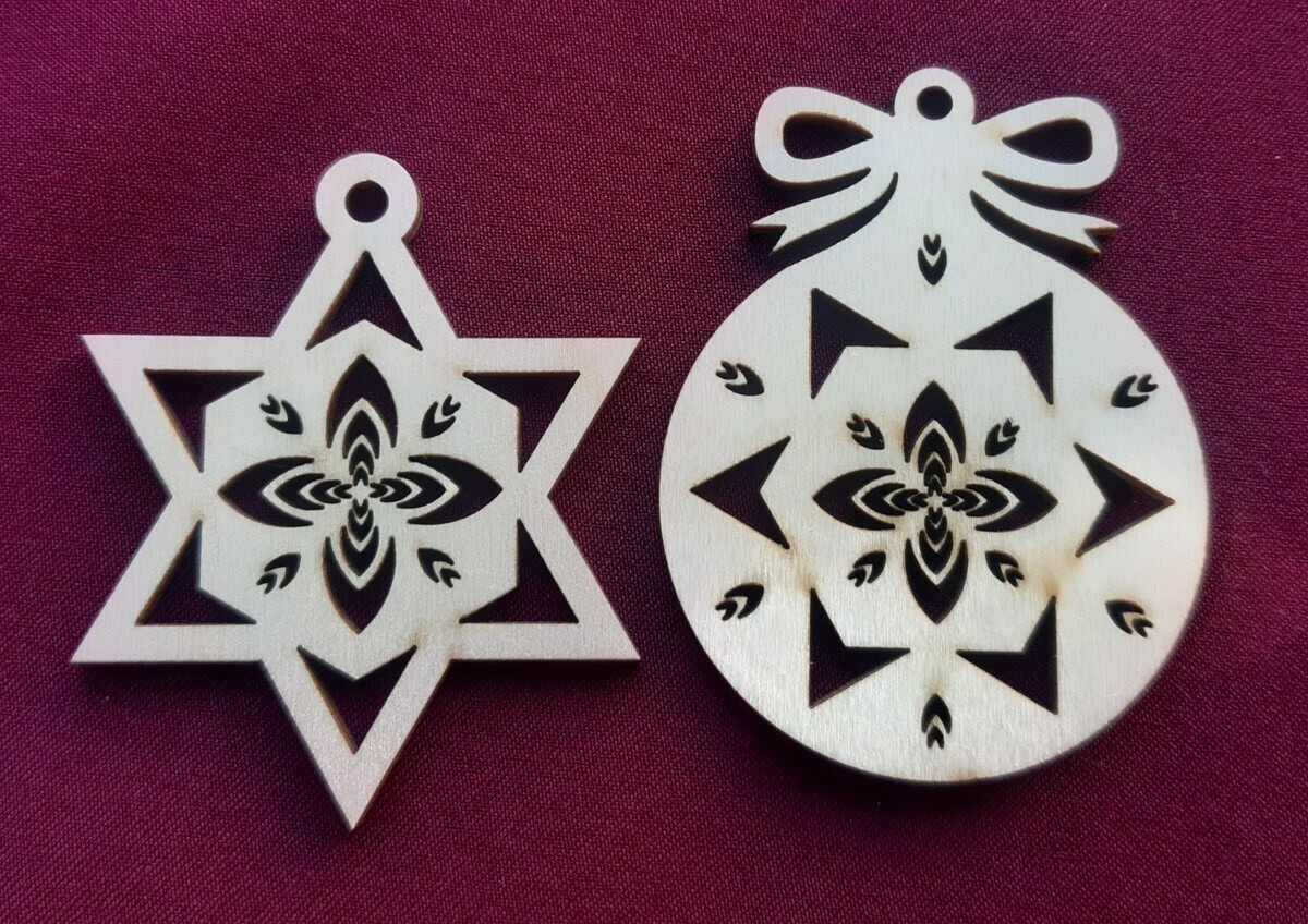 Ozdoby jsou řezané ze dřeva, tloušťka 3mm, nejsou nijak povrchově upravené. Můžete nechat vyniknout jejich přírodní krásu nebo je barvit, mořit mořidly, pomalovat pastelkami nebo fixkami či ozdobit třpytivými glitry.