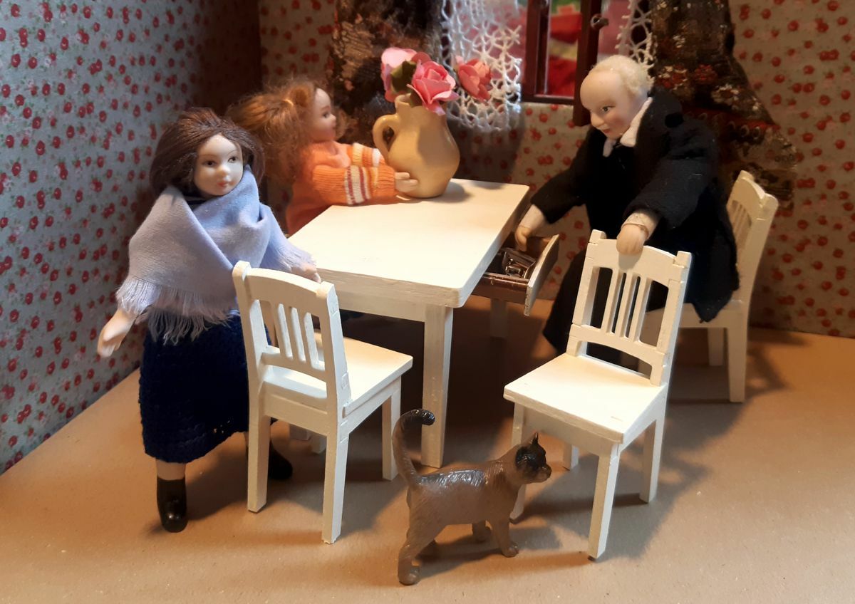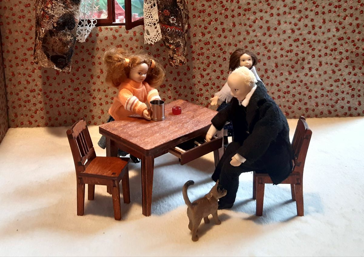 Měřítko 1:12 (panenky 11 - 16 cm) na fotografii s dědečkem a vnučkami má dědeček výšku 14 cm, vnučky 10-11cm.