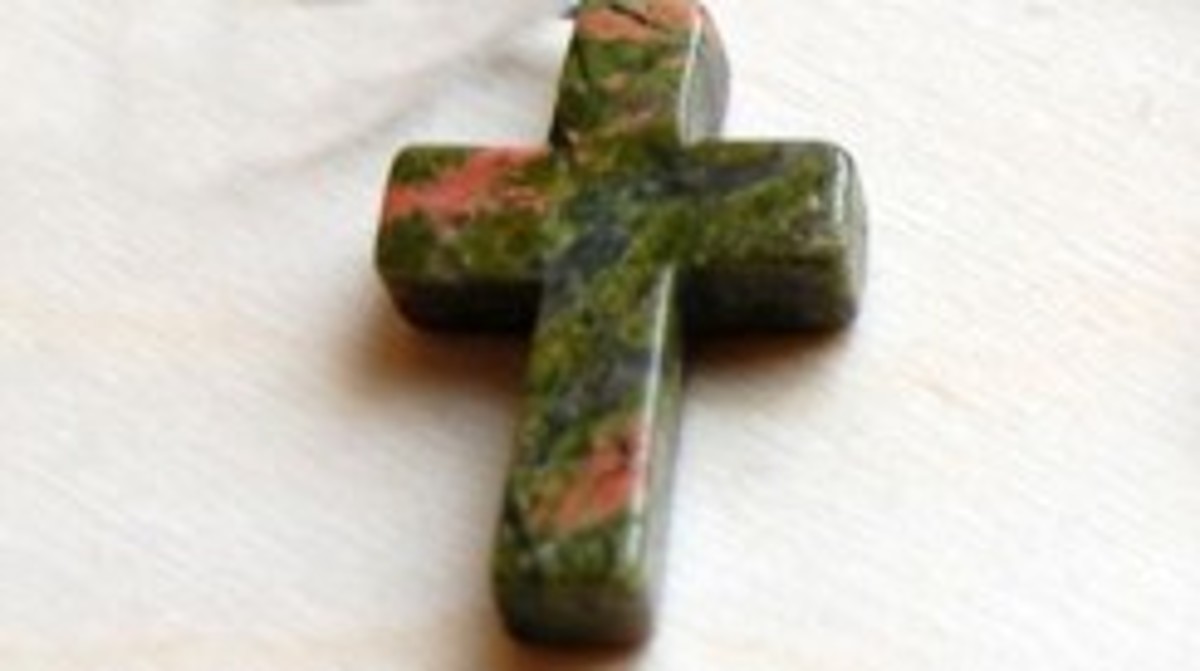 - křížek vybroušený z unakitu,  rozměry křížku cca 18x12x4 mm