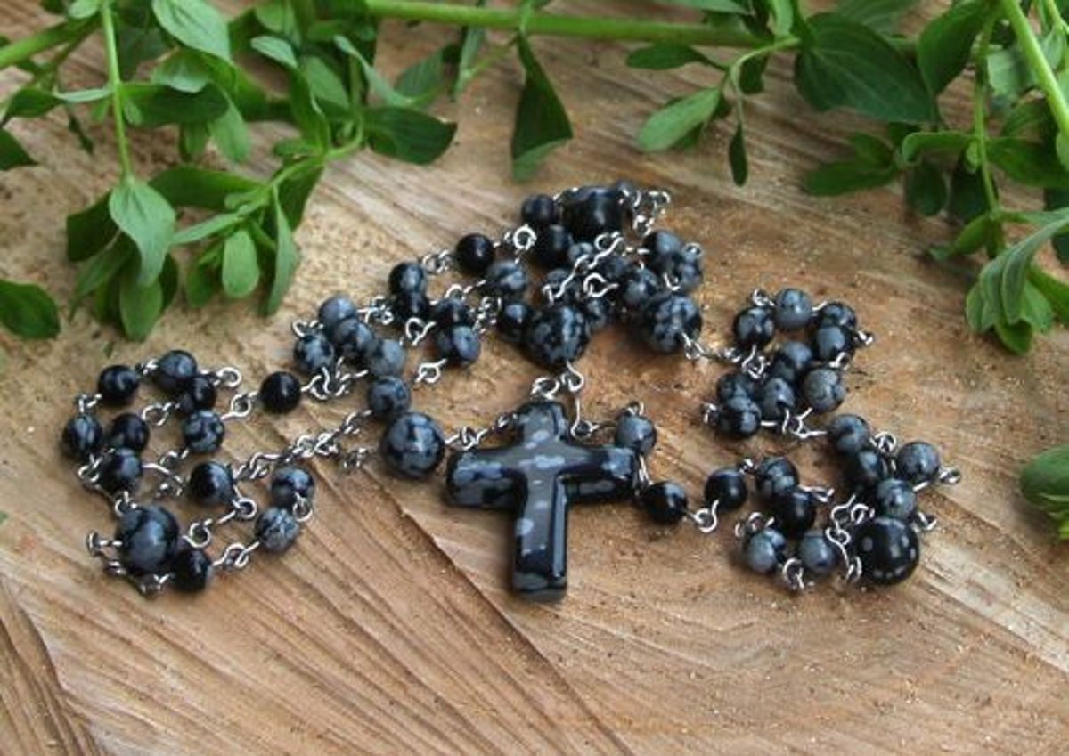 Růženec vločkový obsidián chirurgická ocel
