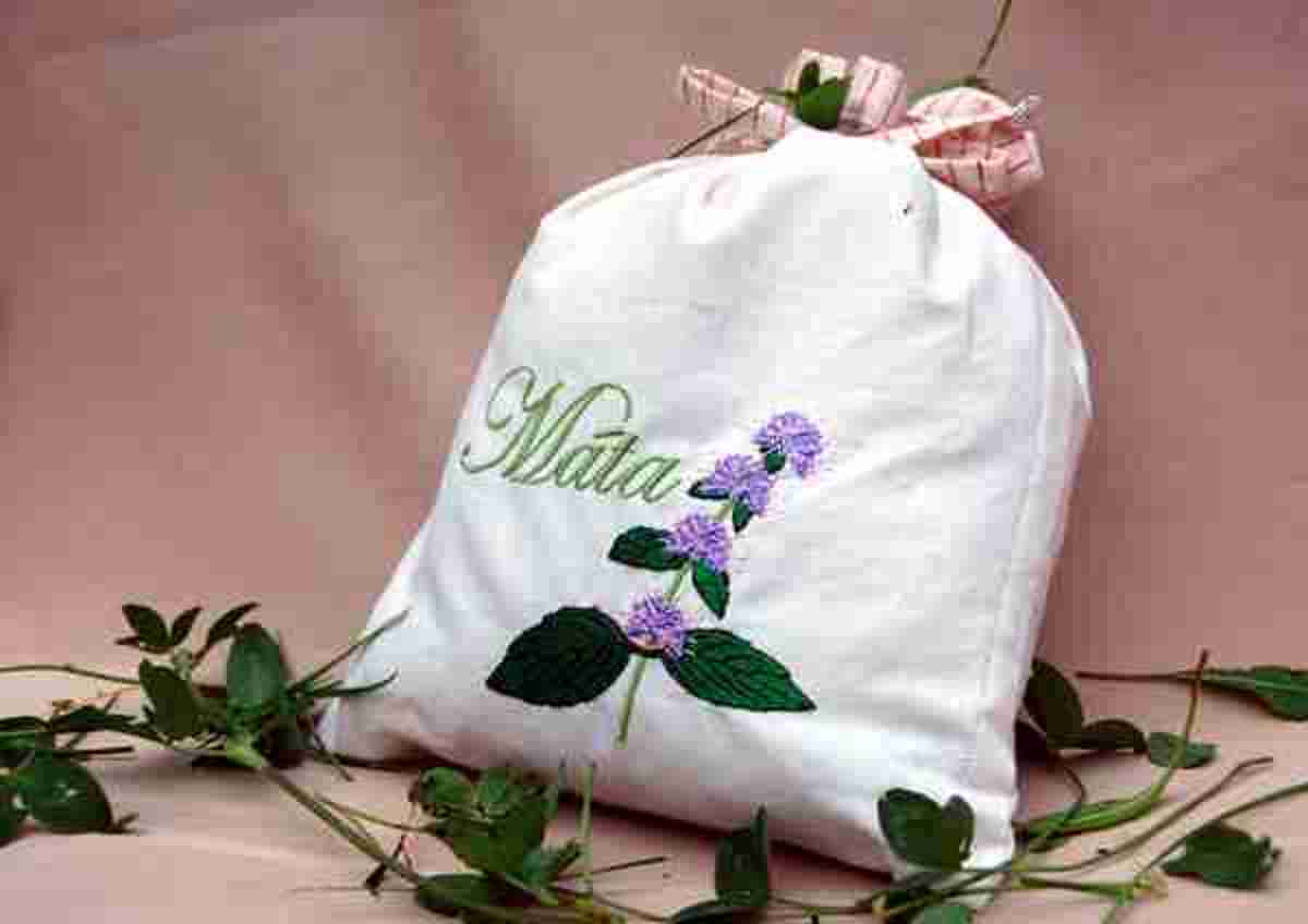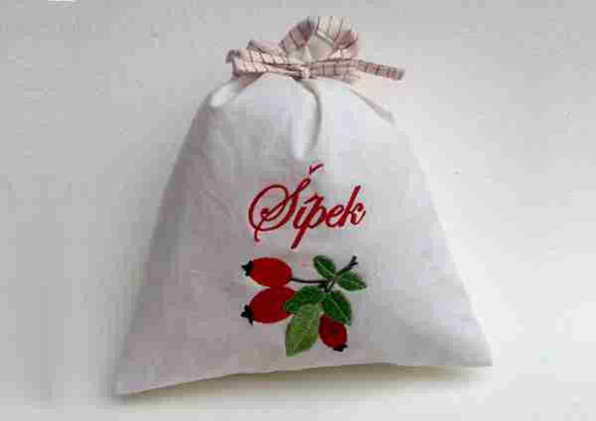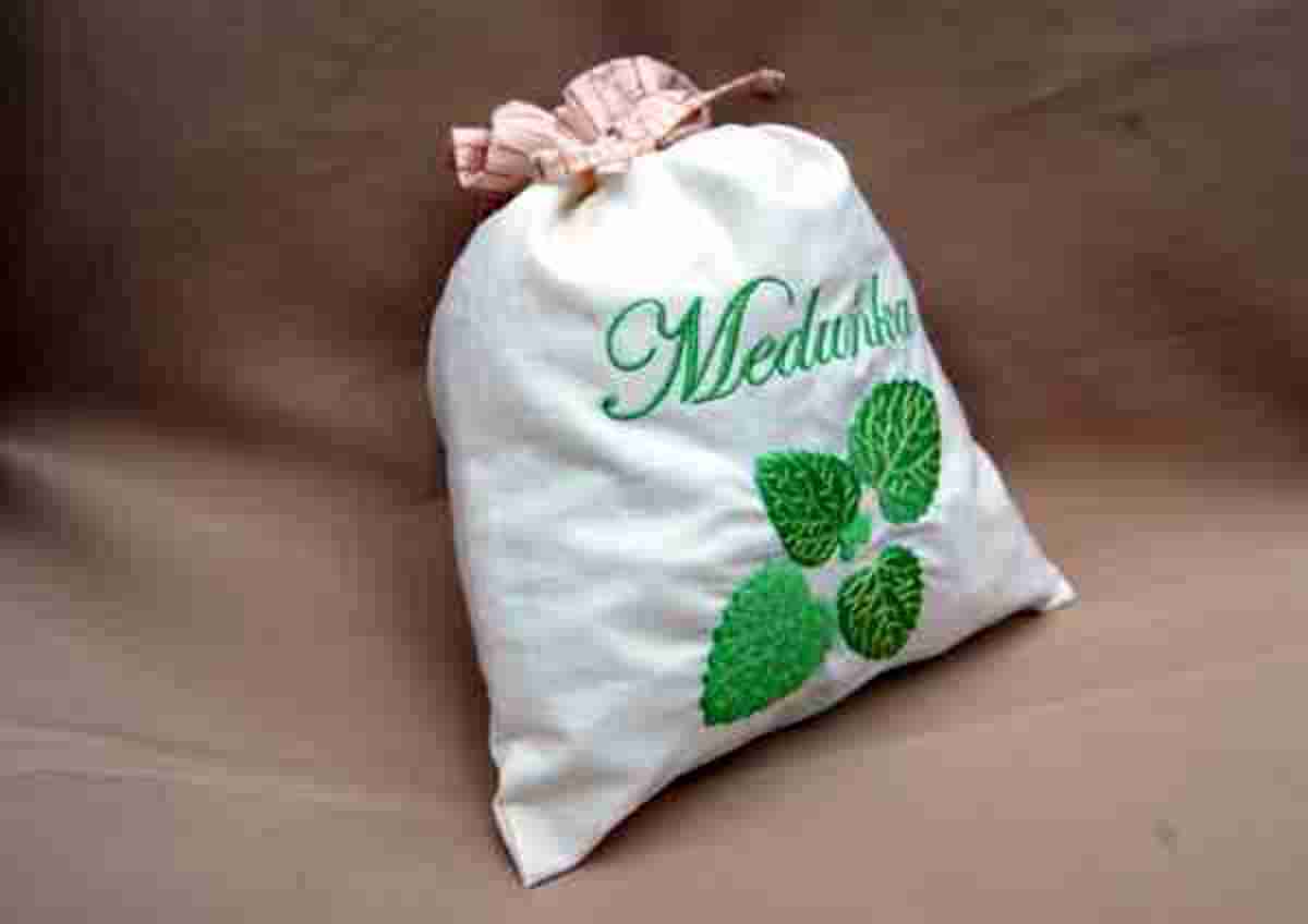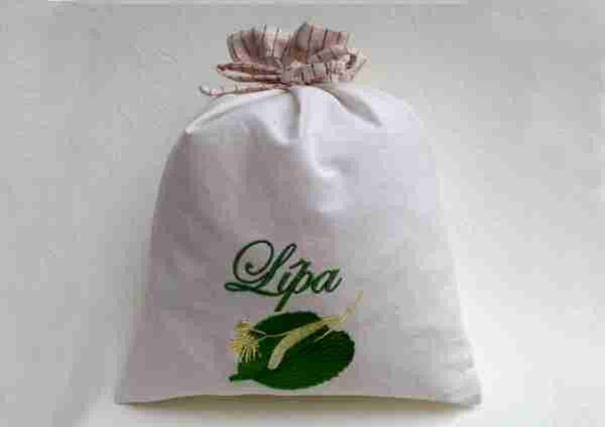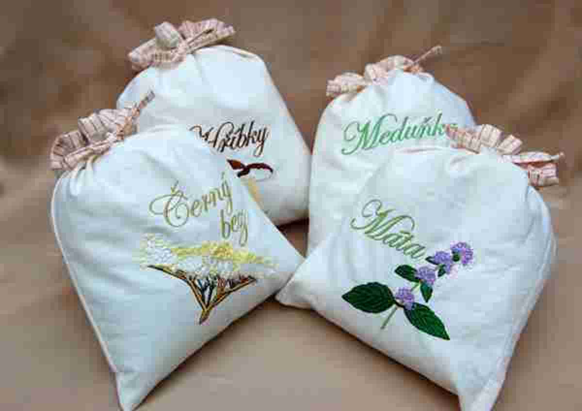 Pytlíček na bylinky s autorskou výšivkou.